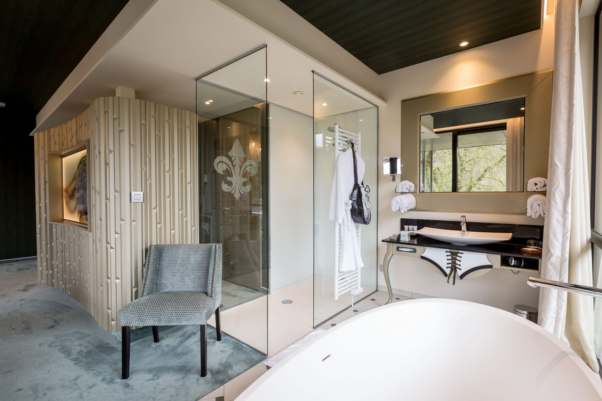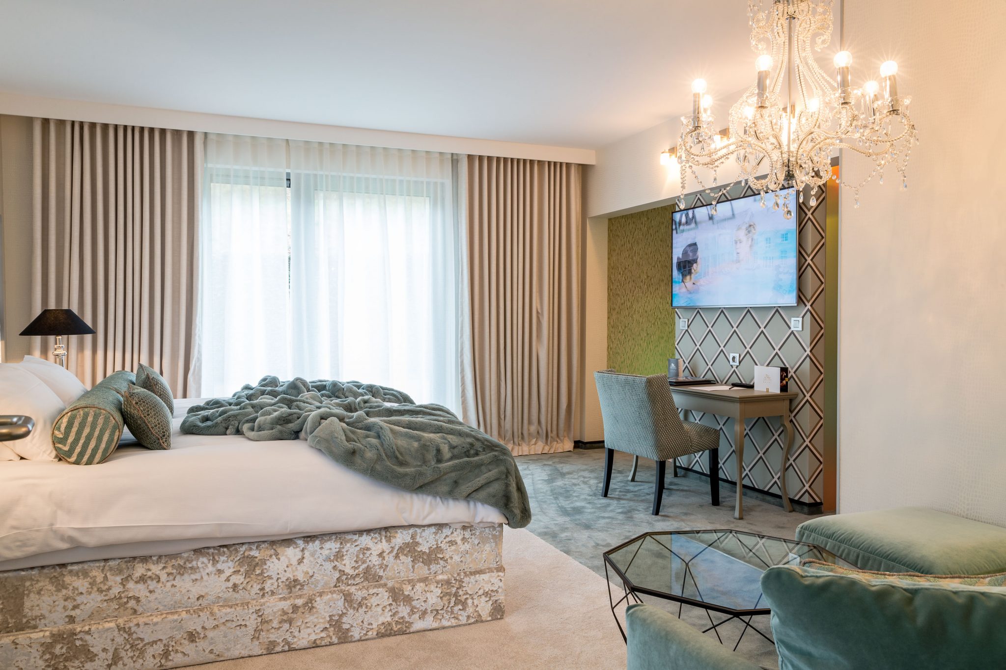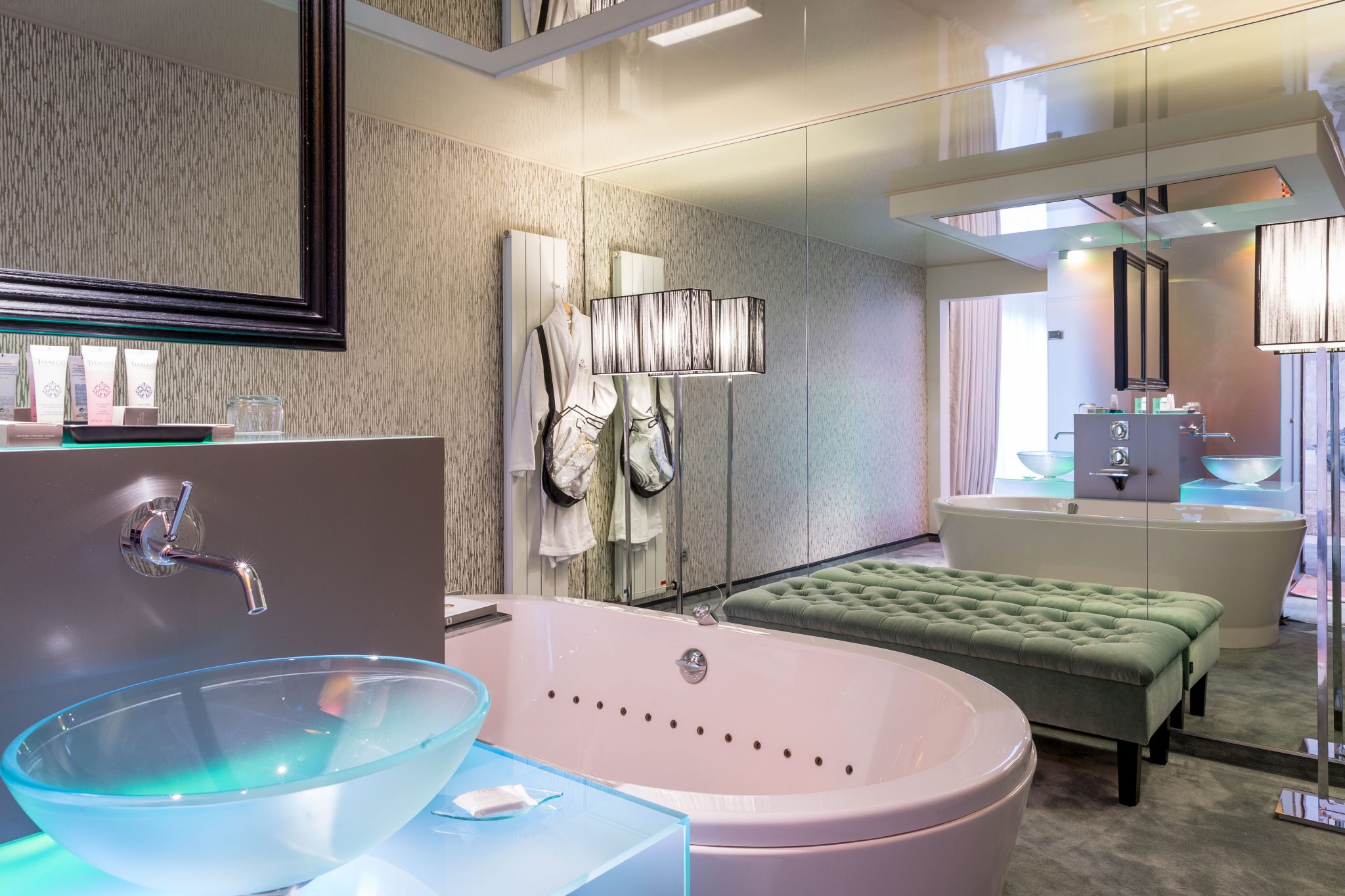 Suite met kingsize bed, zithoek, geintegreerde badkamer met bad, douche en haardroger. Plasmascherm, airconditioning, gratis kluis, minibar, afzonderlijk toilet, dressing, internet, koffie- en thee faciliteiten.